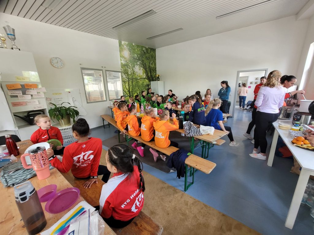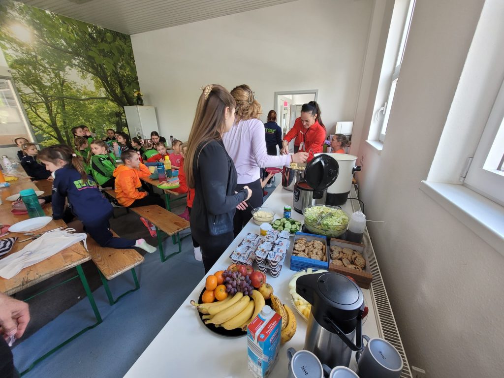Auch die Mittagspause wurde bewusst als gemeinschaftlicher Moment gestaltet: Im Internatraum des Stützpunkts kamen alle Teilnehmerinnen und Trainerinnen zusammen, um sich nach der ersten intensiven Trainingseinheit zu stärken. Ein liebevoll vorbereitetes Buffet mit Pasta, Reis-Curry, frischen Salaten, Obst und kleinen Desserts sorgte für neue Energie. Für die komplette Organisation und Umsetzung zeichnete sich Alice Müller verantwortlich, Mutter von Janoah Müller, Silbermedaillengewinnerin mit dem Team bei der Heim-Europameisterschaft 2025. Dieses Engagement steht beispielhaft für den außergewöhnlichen Zusammenhalt und die gelebte Gemeinschaft am Bundesstützpunkt Mannheim.