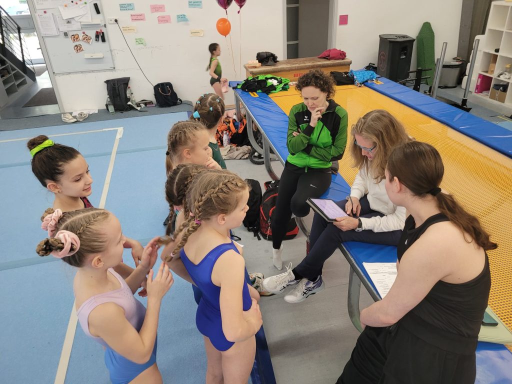 Ein besonderer Mehrwert ergab sich durch die Einbindung erfahrener Kampfrichterinnen. Mit großem Engagement nahmen sich Constanze Bastian, Julia Maier, Petra Schäfer und Lara Vetter Zeit, um den Athletinnen direkt an den Geräten konstruktives Feedback zu geben. Diese unmittelbare Rückmeldung zu Ausführung, möglichen Abzügen und konkreten Verbesserungspotenzialen sorgte für einen echten Feinschliff – eine Erfahrung, die in dieser Intensität im regulären Trainingsalltag nur selten möglich ist und sowohl von Athletinnen als auch von Heimtrainerinnen als äußerst wertvoll wahrgenommen wurde.
