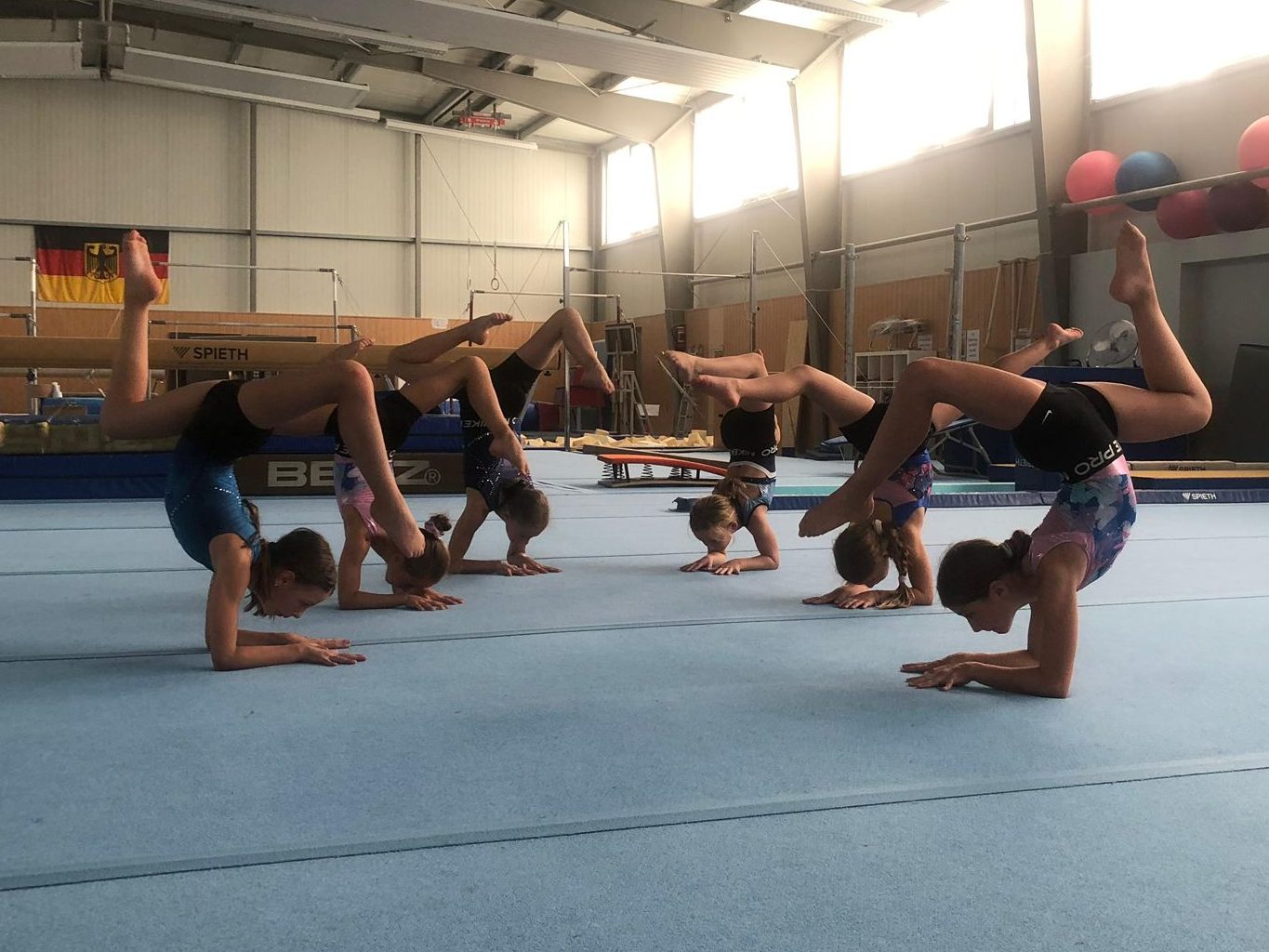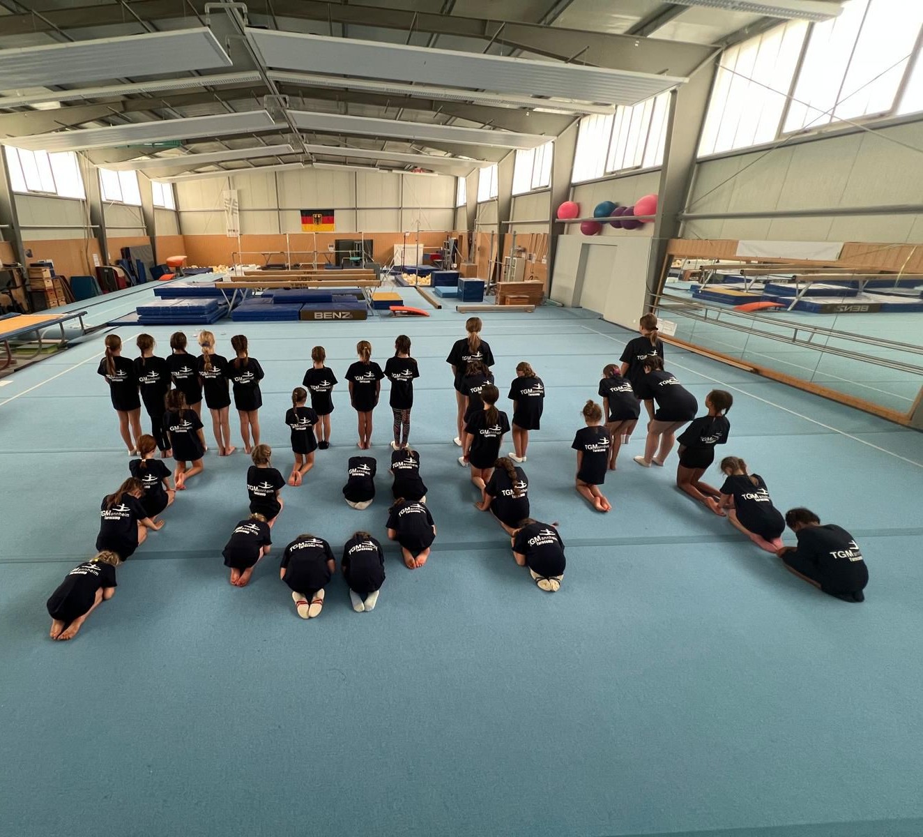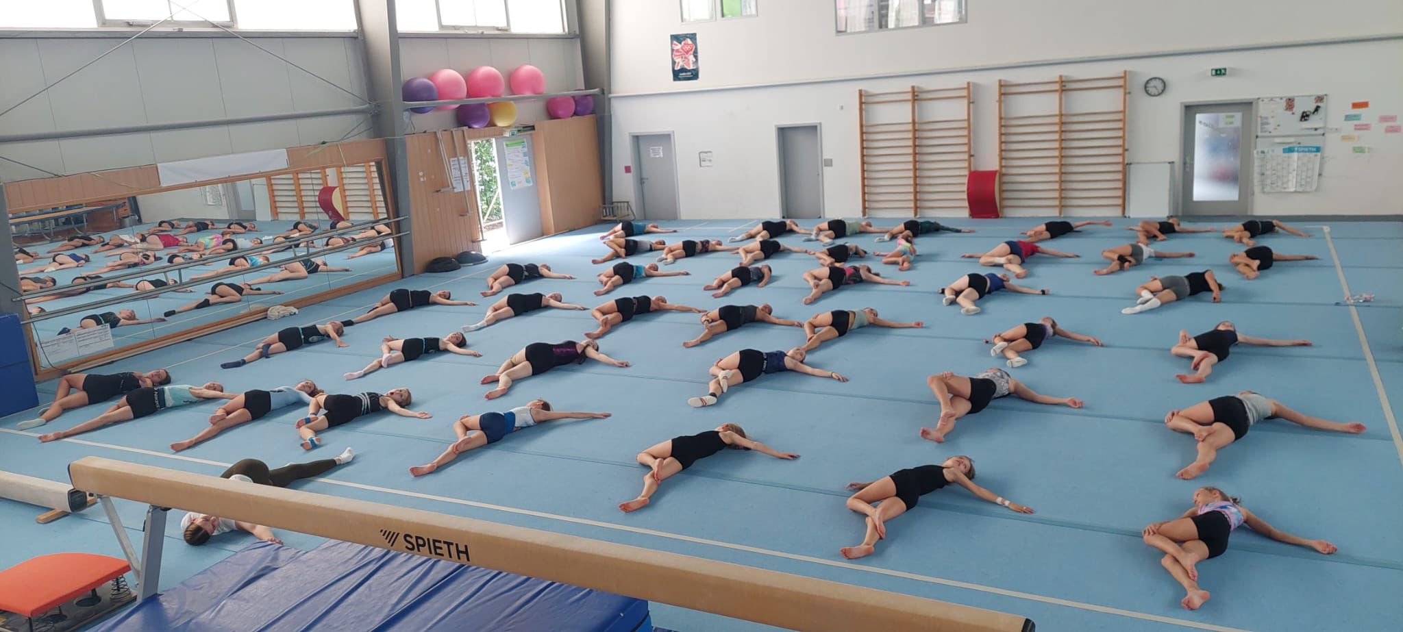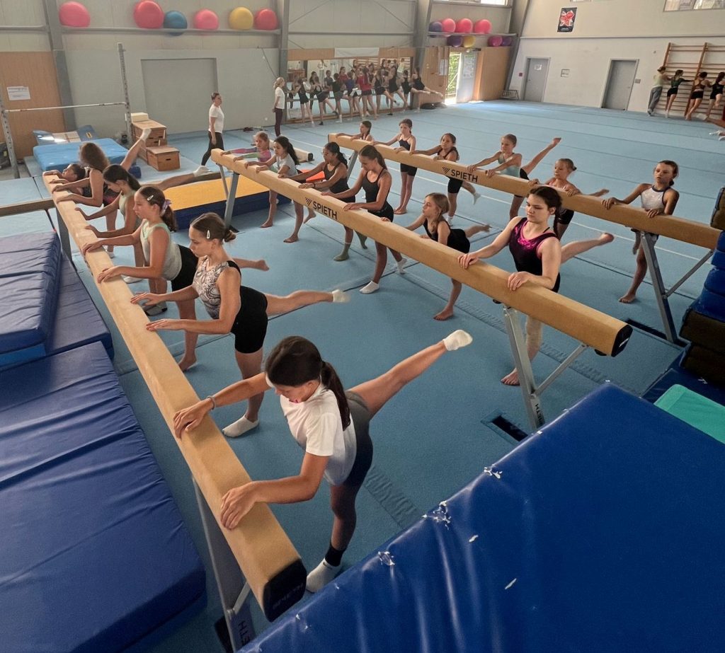 Zur Erwärmung im Technik-Schulungscamp hatten die Kinder eine kurze Ballett-Einheit. Durch gezielte Übungen zu Körperspannung, Armhaltungen und Positionen konnten die Turnerinnen und Turner ihre Ausdruckskraft verbessern und wichtige Grundlagen für saubere Bewegungen am Boden und an den Geräten vertiefen.